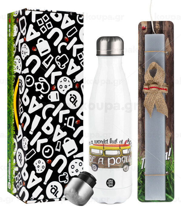 Outerbanks Pogue Life, Easter candle, metallic white thermos bottle (500ml) & aromatic flat candle (30cm) (GRAY)