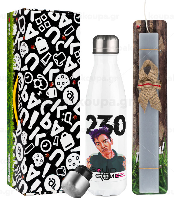 Squid game 2, Thanos 230, Easter candle, metallic white thermos bottle (500ml) & aromatic flat candle (30cm) (GRAY)