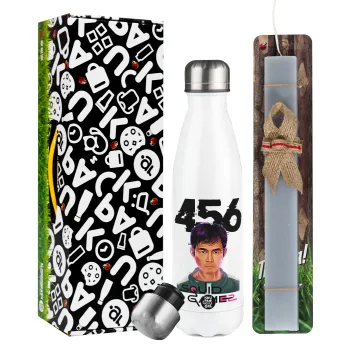 Squid game 456 Gi-Hun, Easter candle, metallic white thermos bottle (500ml) & aromatic flat candle (30cm) (GRAY)