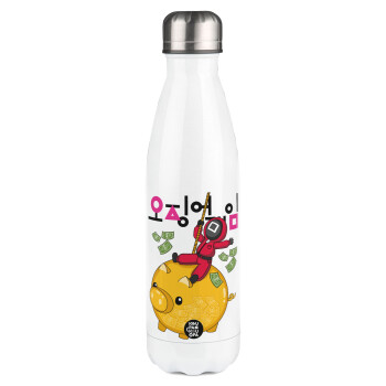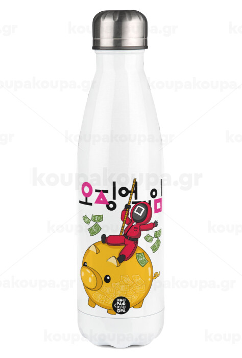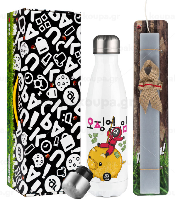 Squid game money pig, Easter candle, metallic white thermos bottle (500ml) & aromatic flat candle (30cm) (GRAY)