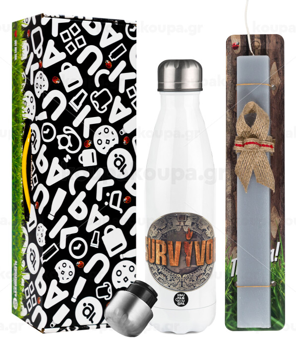 Survivor, Easter candle, metallic white thermos bottle (500ml) & aromatic flat candle (30cm) (GRAY)