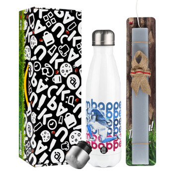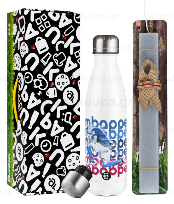 Kylian Mbappé, Easter candle, metallic white thermos bottle (500ml) & aromatic flat candle (30cm) (GRAY)