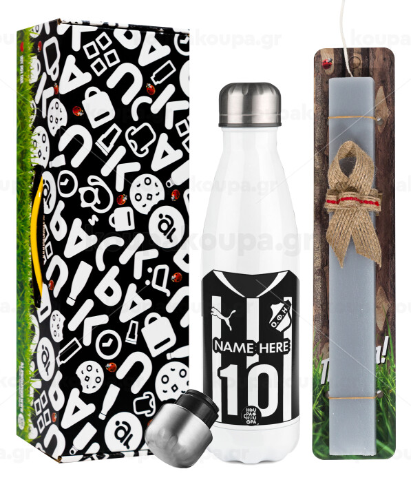 ΟΦΗ εμφάνιση, Easter candle, metallic white thermos bottle (500ml) & aromatic flat candle (30cm) (GRAY)