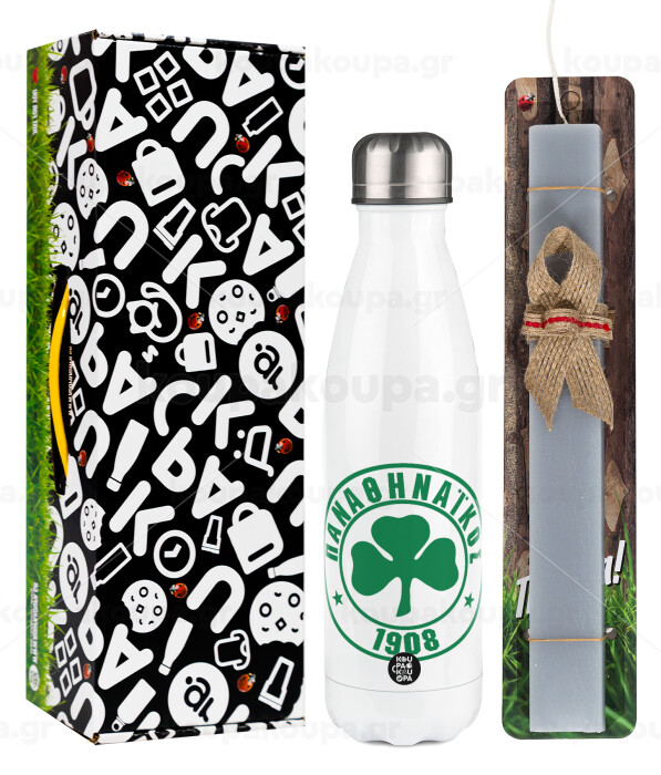 ΠΑΟ Παναθηναϊκός, Easter candle, metallic white thermos bottle (500ml) & aromatic flat candle (30cm) (GRAY)