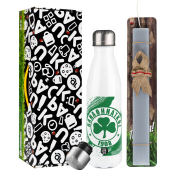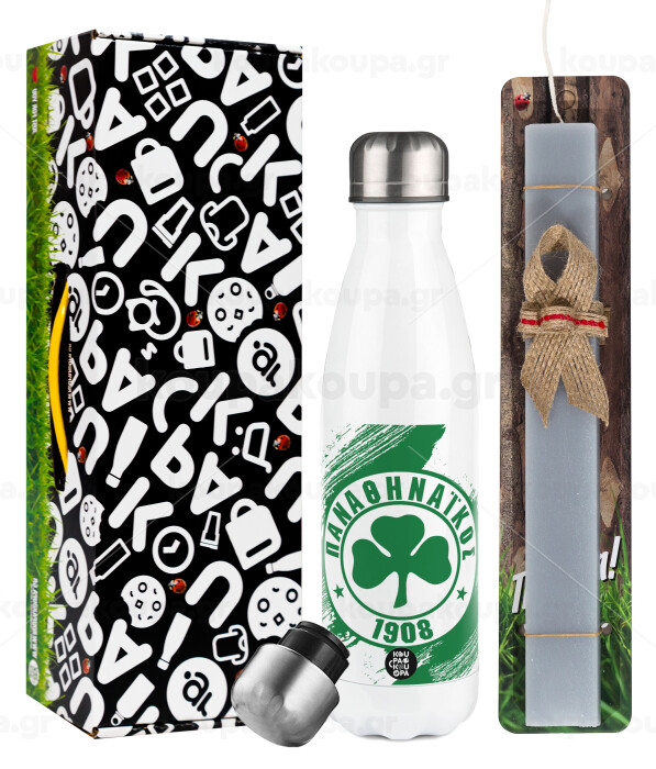Π.Α.Ο., Easter candle, metallic white thermos bottle (500ml) & aromatic flat candle (30cm) (GRAY)