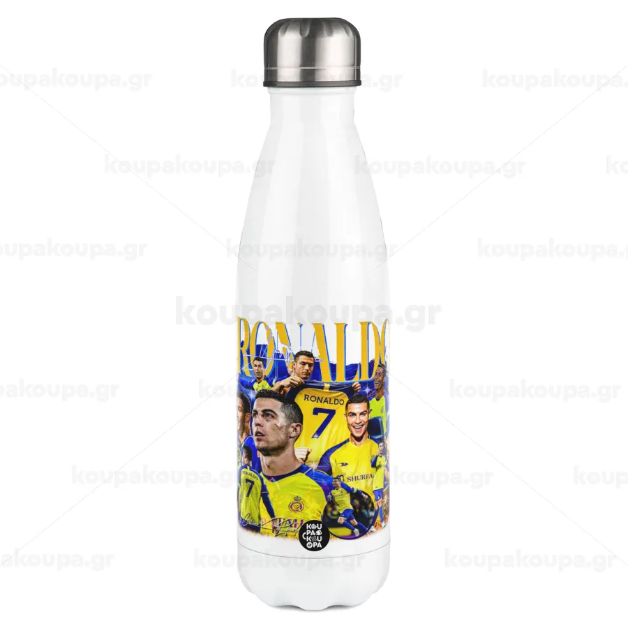 Cristiano Ronaldo Al Nassr, Easter candle, metallic white thermos bottle (500ml) & aromatic flat candle (30cm) (GRAY)