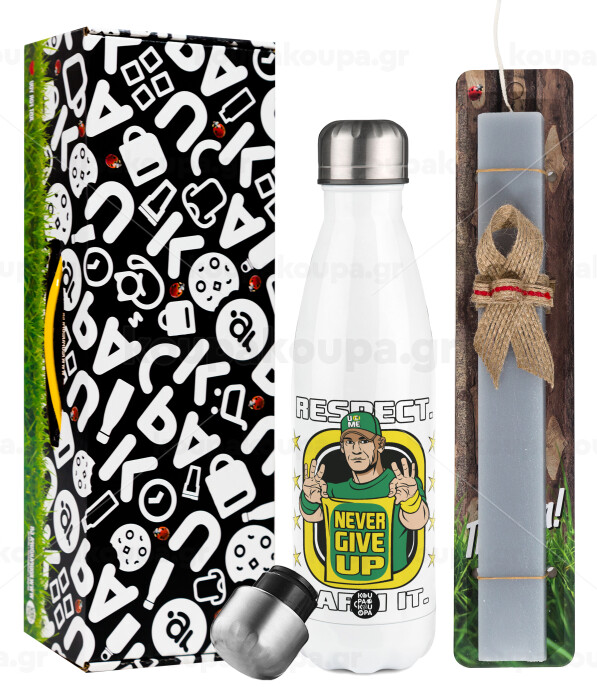 John Cena, Easter candle, metallic white thermos bottle (500ml) & aromatic flat candle (30cm) (GRAY)