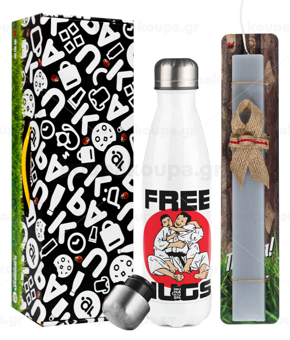 JUDO free hugs, Easter candle, metallic white thermos bottle (500ml) & aromatic flat candle (30cm) (GRAY)