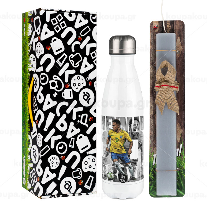 Neymar (Νεϊμάρ), Easter candle, metallic white thermos bottle (500ml) & aromatic flat candle (30cm) (GRAY)