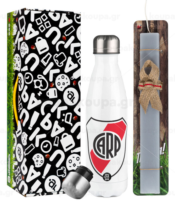 River Plate, Easter candle, metallic white thermos bottle (500ml) & aromatic flat candle (30cm) (GRAY)