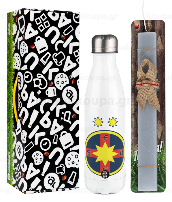 FC Steaua Bucuresti (FCSB), Easter candle, metallic white thermos bottle (500ml) & aromatic flat candle (30cm) (GRAY)