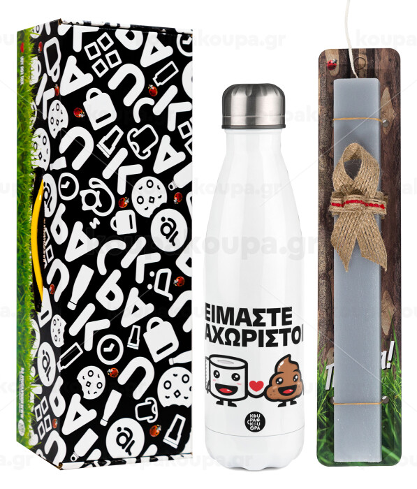Είμαστε αχώριστοι, Easter candle, metallic white thermos bottle (500ml) & aromatic flat candle (30cm) (GRAY)