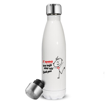 Σ'αγαπώ πιο πολύ από την ζωή μου!!!, Easter candle, metallic white thermos bottle (500ml) & aromatic flat candle (30cm) (GRAY)