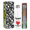 Σ΄αγαπώ τόοοοσο πολύ καρδιά, Easter candle, metallic white thermos bottle (500ml) & aromatic flat candle (30cm) (GRAY)