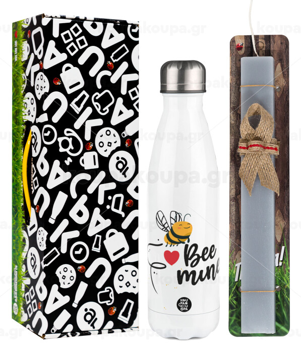 Bee mine!!!, Easter candle, metallic white thermos bottle (500ml) & aromatic flat candle (30cm) (GRAY)