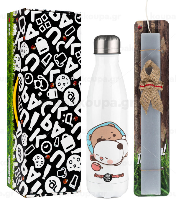 bubu + dudu, Easter candle, metallic white thermos bottle (500ml) & aromatic flat candle (30cm) (GRAY)