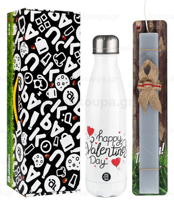 Happy Valentines Day!!!, Easter candle, metallic white thermos bottle (500ml) & aromatic flat candle (30cm) (GRAY)