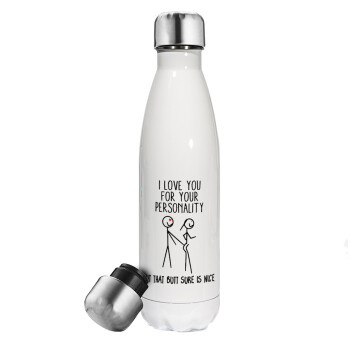 I Love you for your personality, Easter candle, metallic white thermos bottle (500ml) & aromatic flat candle (30cm) (GRAY)
