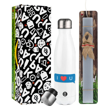 I Love You text message, Easter candle, metallic white thermos bottle (500ml) & aromatic flat candle (30cm) (GRAY)