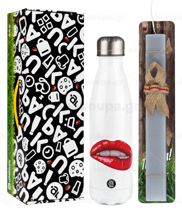 Lips, Easter candle, metallic white thermos bottle (500ml) & aromatic flat candle (30cm) (GRAY)