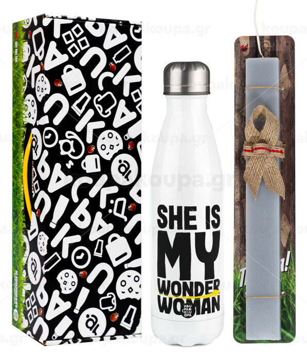She is my wonder woman, Easter candle, metallic white thermos bottle (500ml) & aromatic flat candle (30cm) (GRAY)
