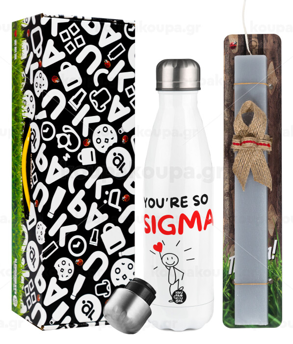 Sigma Valentine's Day , Easter candle, metallic white thermos bottle (500ml) & aromatic flat candle (30cm) (GRAY)