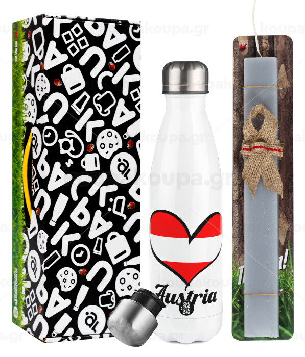 Austria flag, Easter candle, metallic white thermos bottle (500ml) & aromatic flat candle (30cm) (GRAY)