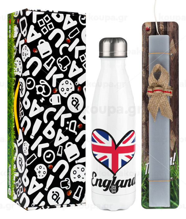 England flag, Easter candle, metallic white thermos bottle (500ml) & aromatic flat candle (30cm) (GRAY)