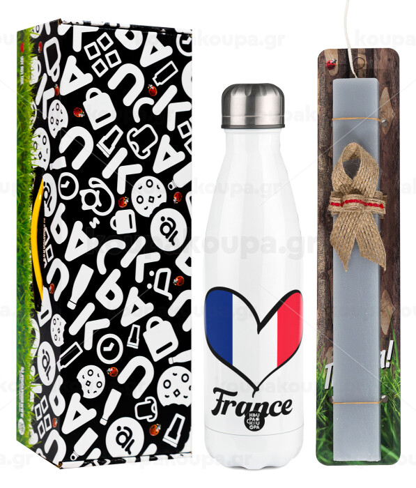 France flag, Easter candle, metallic white thermos bottle (500ml) & aromatic flat candle (30cm) (GRAY)