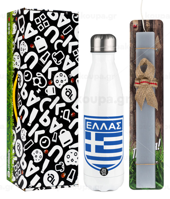 Hellas, Easter candle, metallic white thermos bottle (500ml) & aromatic flat candle (30cm) (GRAY)