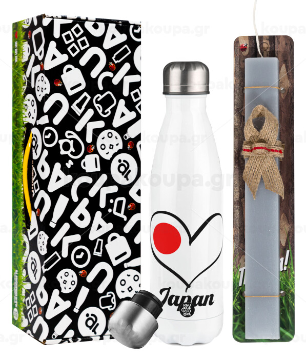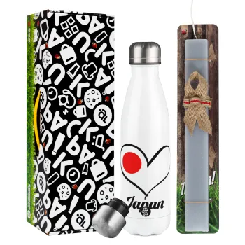 Japan flag, Easter candle, metallic white thermos bottle (500ml) & aromatic flat candle (30cm) (GRAY)