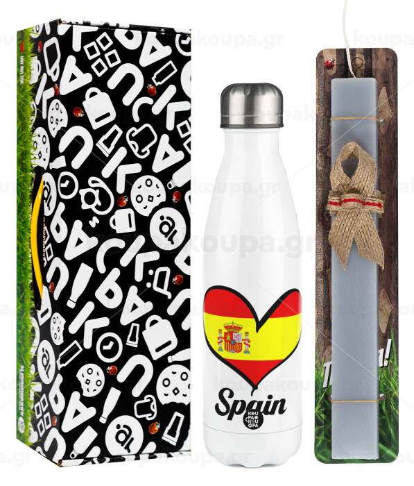 Spain flag, Easter candle, metallic white thermos bottle (500ml) & aromatic flat candle (30cm) (GRAY)