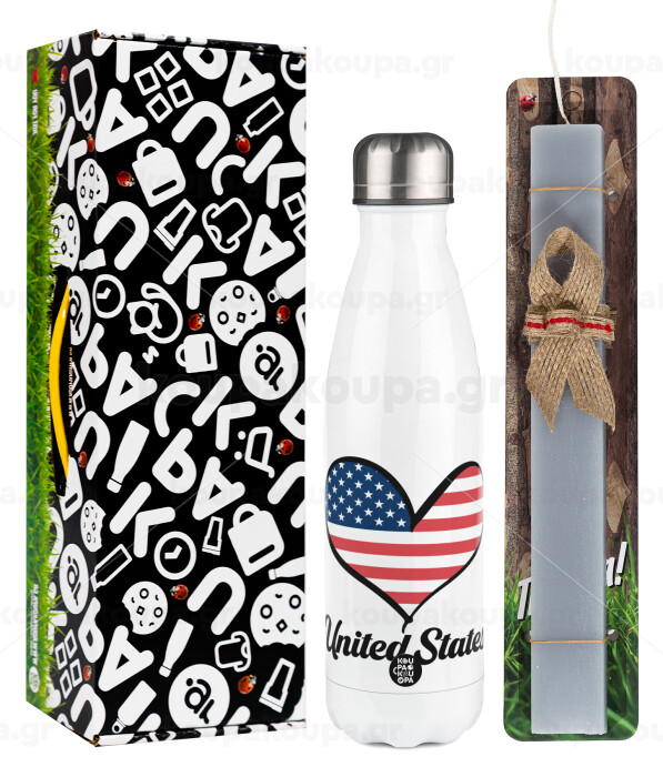 USA flag, Easter candle, metallic white thermos bottle (500ml) & aromatic flat candle (30cm) (GRAY)