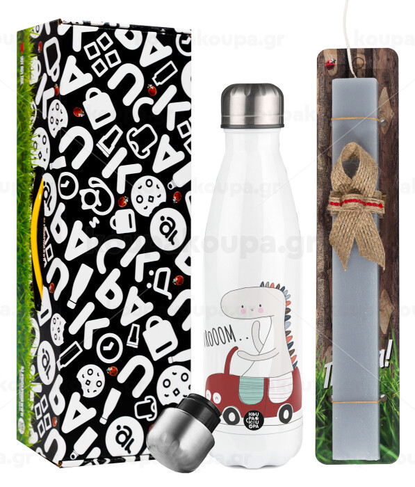 Βρουμ βρουμ, Easter candle, metallic white thermos bottle (500ml) & aromatic flat candle (30cm) (GRAY)