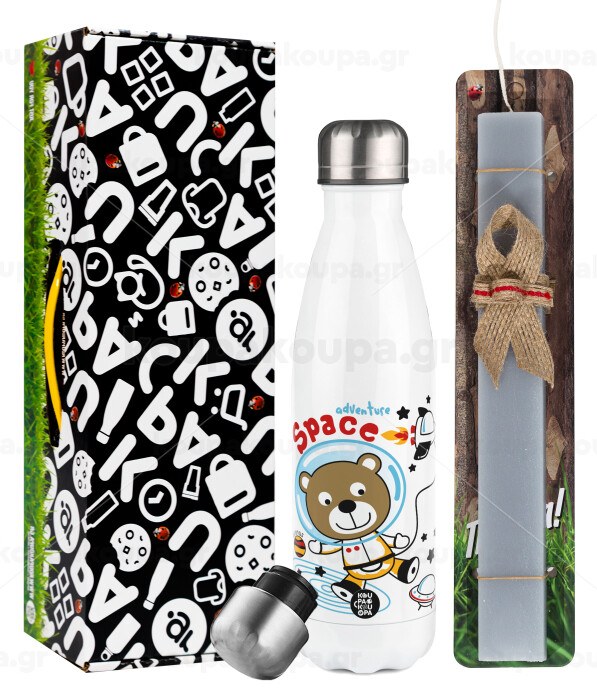 Kids Space, Easter candle, metallic white thermos bottle (500ml) & aromatic flat candle (30cm) (GRAY)