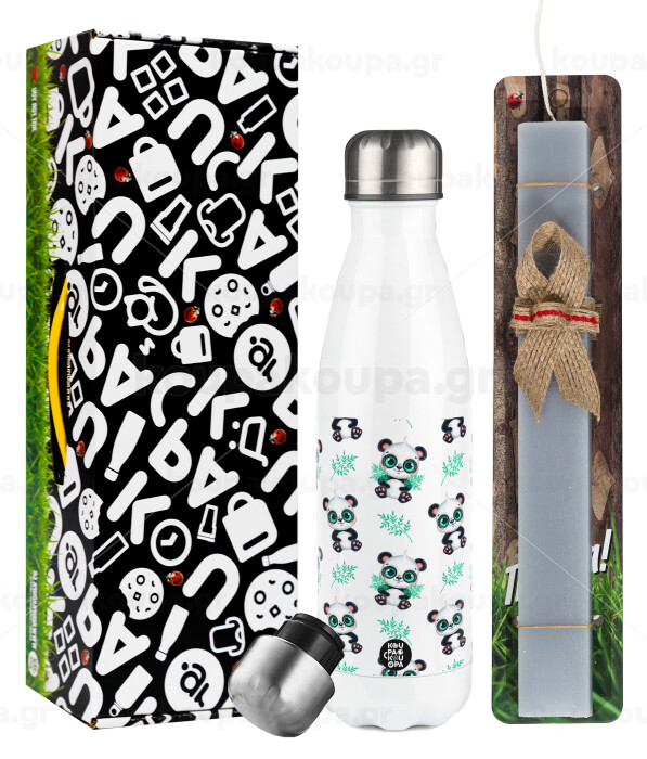 Panda, Easter candle, metallic white thermos bottle (500ml) & aromatic flat candle (30cm) (GRAY)