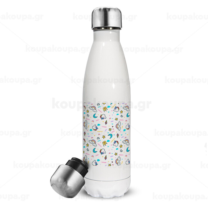 Unicorn pattern white, Easter candle, metallic white thermos bottle (500ml) & aromatic flat candle (30cm) (GRAY)