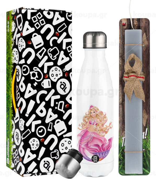Barbie mermaid blue, Easter candle, metallic white thermos bottle (500ml) & aromatic flat candle (30cm) (GRAY)