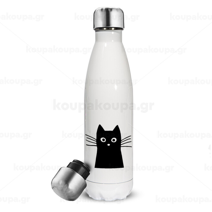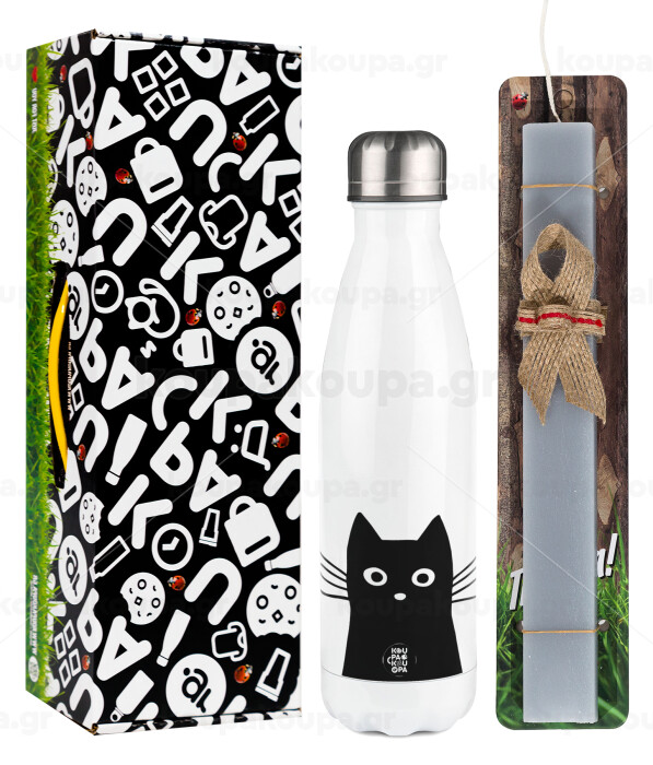 Black Cat, Easter candle, metallic white thermos bottle (500ml) & aromatic flat candle (30cm) (GRAY)