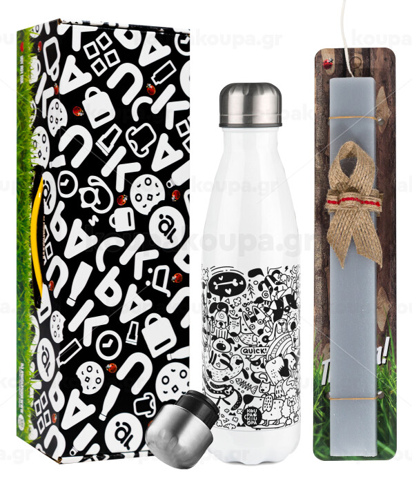 DOG pattern, Easter candle, metallic white thermos bottle (500ml) & aromatic flat candle (30cm) (GRAY)