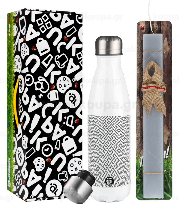 Doodle Maze, Easter candle, metallic white thermos bottle (500ml) & aromatic flat candle (30cm) (GRAY)