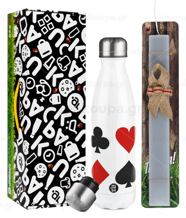 Τραπουλόχαρτα, Easter candle, metallic white thermos bottle (500ml) & aromatic flat candle (30cm) (GRAY)