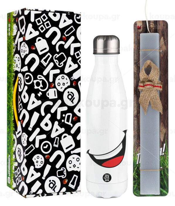 Φατσούλα γελάω!!!, Easter candle, metallic white thermos bottle (500ml) & aromatic flat candle (30cm) (GRAY)