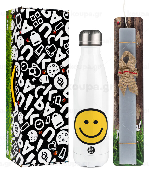 Smile classic, Easter candle, metallic white thermos bottle (500ml) & aromatic flat candle (30cm) (GRAY)
