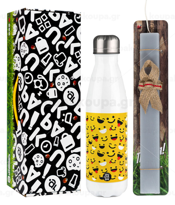 Smilies , Easter candle, metallic white thermos bottle (500ml) & aromatic flat candle (30cm) (GRAY)