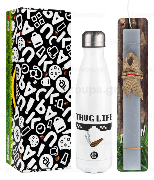 thug life, Easter candle, metallic white thermos bottle (500ml) & aromatic flat candle (30cm) (GRAY)