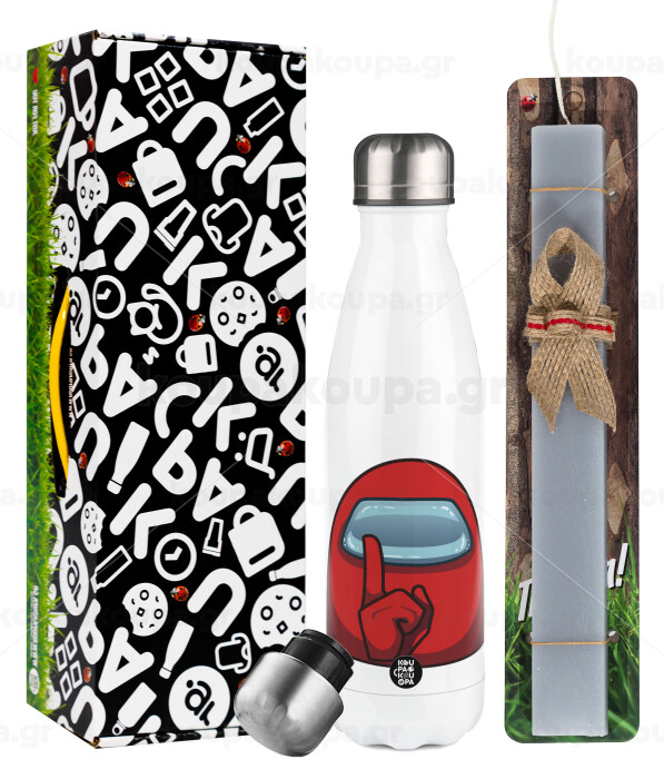 Among US, Easter candle, metallic white thermos bottle (500ml) & aromatic flat candle (30cm) (GRAY)