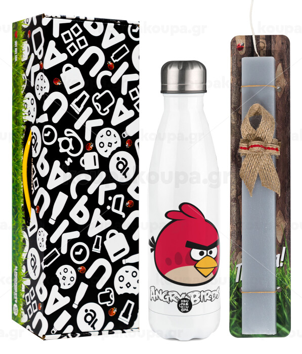 Angry birds Terence, Easter candle, metallic white thermos bottle (500ml) & aromatic flat candle (30cm) (GRAY)