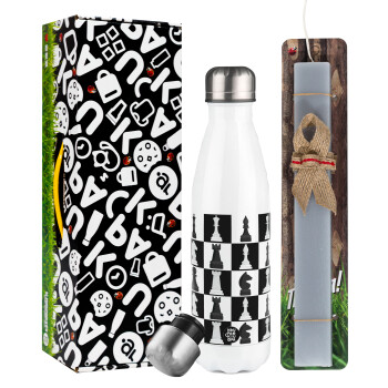 Chess set, Easter candle, metallic white thermos bottle (500ml) & aromatic flat candle (30cm) (GRAY)