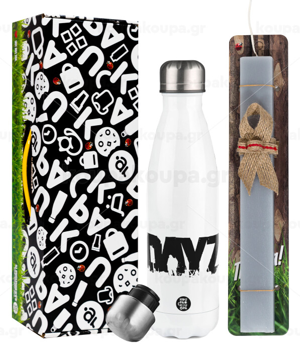 DayZ, Easter candle, metallic white thermos bottle (500ml) & aromatic flat candle (30cm) (GRAY)